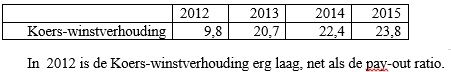 Winst-koersverhouding = 3,31/78,77 x 100 = 4,2%