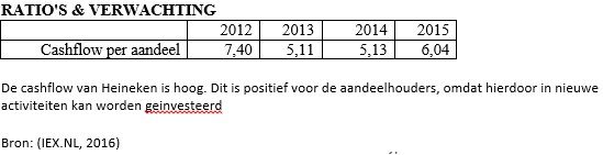 In de tabel hieronder is de nettowinst per werknemer over de periode 2012 – 2015 af te lezen. Hieruit kan geconcludeerd worden dat de nettowinst per werknemer na het jaar 2012 een dip hebben gehad, maar dat de cijfers zich al snel herstelden. Vanaf 2014 is de nettowinst en de nettowinst per werknemer weer toegenomen, namelijk van € 16.853 in 2013 naar € 29.024 in 2015. Deze stijging duidt op een goede ontwikkeling voor Heineken. Concluderend kunnen we stellen dat Heineken erin geslaagd is om meer te doen met relatief minder mensen.