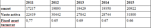 Fixed asset turnover wordt berekent door de omzet de delen door de vaste activa. Dit kengetal is belangrijk voor de onderneming want het geeft een beeld over de kapitaalintensiteit van de onderneming.