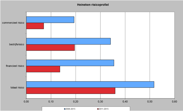 Het Heineken risicoprofiel geeft een duidelijke verbetering aan vanaf 2011. Het totale risico is nog steeds erg hoog, maar er kan aangetoond worden dat ook hier al een forse vermindering heeft opgetreden. De omzet van Heineken kan in 2015 dan ook 7% afwijken van de gemiddelde omzet. Het bedrijfsresultaat 20% en de financiële lasten kunnen maar 14% afwijken van het gemiddelde. Alle risico's zijn in ieder geval gedaald en dit is positief voor Heineken en voor de aandeelhouders.