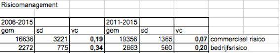 In de tabel hieronder is het bedrijfsrisico van Heineken weergeven. Deze bedraagt voor 2006-2015 (755/2272) = 0,34 en van 2011-2016 (560/2863) = 0,20. Het bedrijfsrisico is het dus afgenomen dat betekent dat het bedrijfsresultaat van Heineken per jaar 20% kan afwijken van het gemiddelde bedrijfsresultaat.